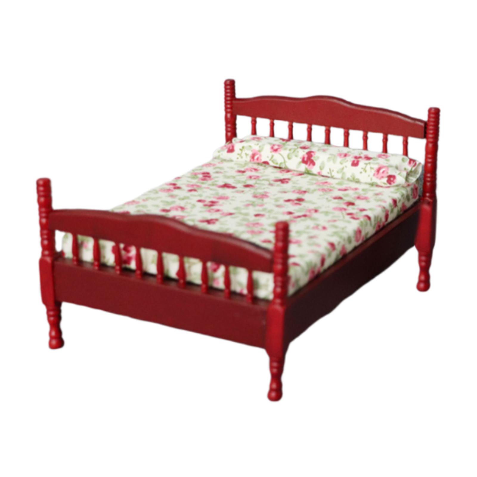 1 12 Dollhouse Miniature Double Bed To Pretend Toy For Small Life Brown Walmart Canada